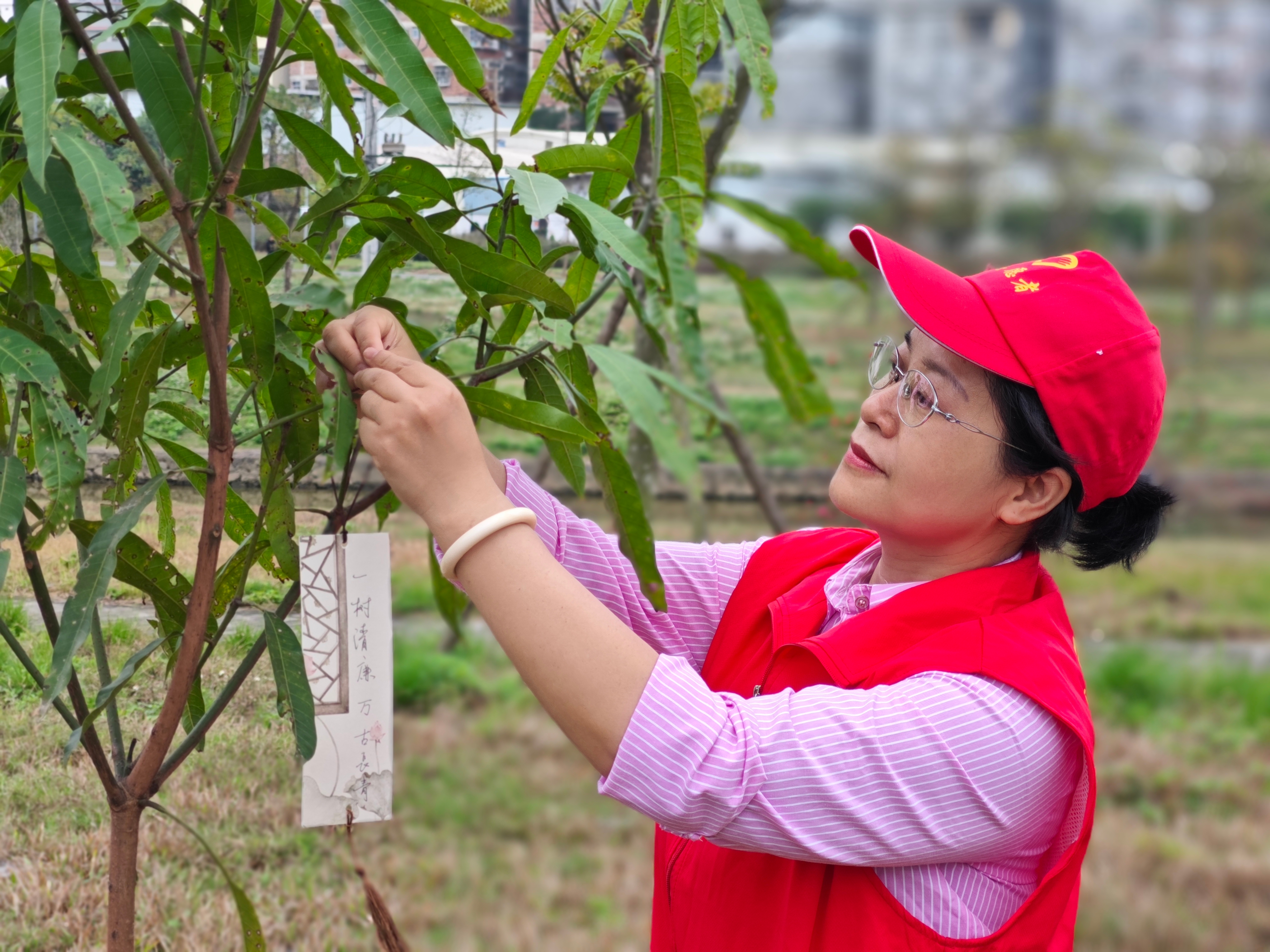 栽種好樹苗后,干部職工們將自行書寫的“植樹播綠,倡廉樹風(fēng)”“種廉潔樹,筑防腐堤”“廉潔恰是春江水,潤澤人生長安寧”等廉潔寄語卡片懸掛到樹苗上。卡片隨著春風(fēng)搖曳,形成了一道獨(dú)具特色的“清風(fēng)林”風(fēng)景線。