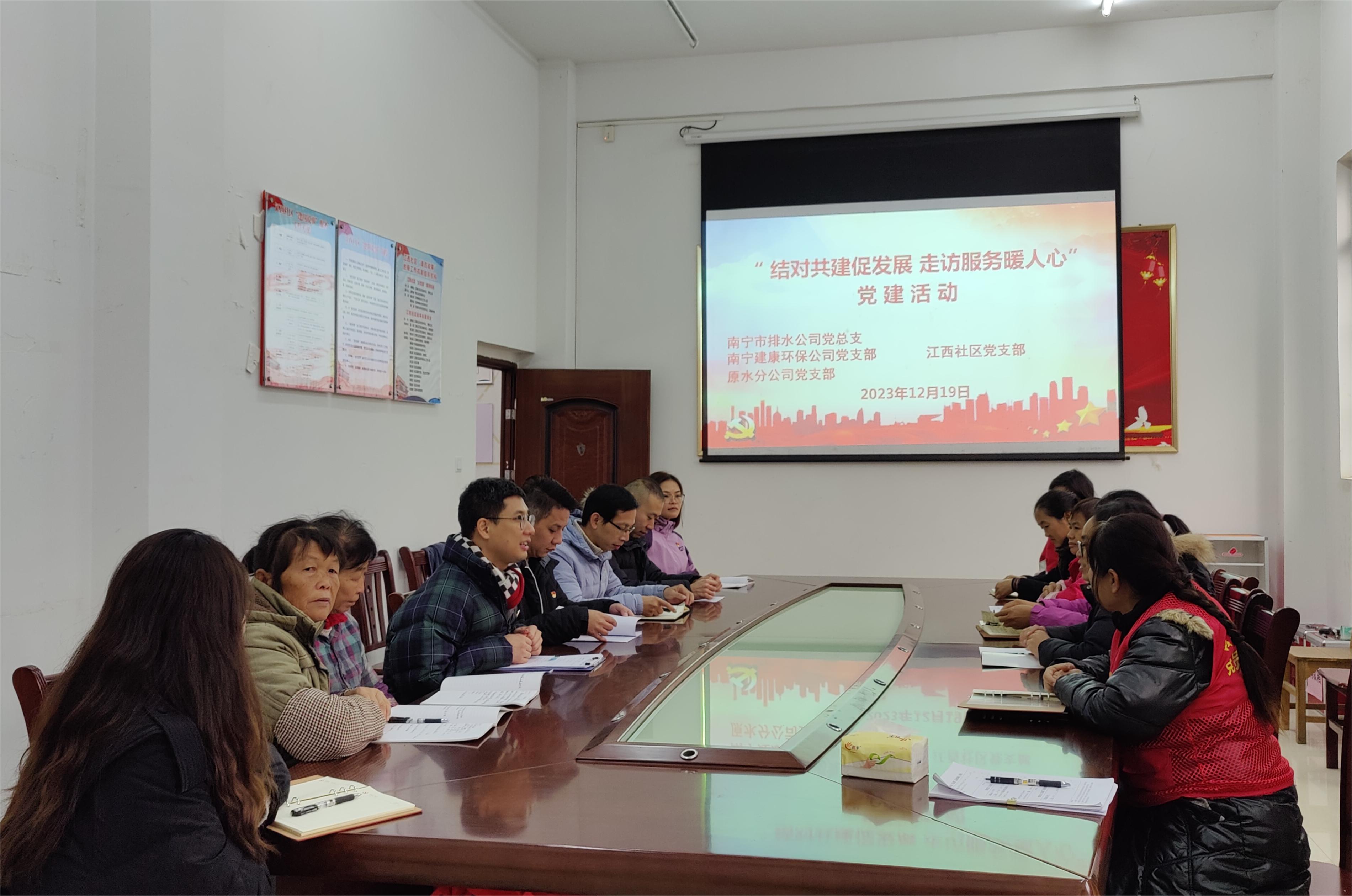 12月19日上午,市排水公司黨總支聯(lián)合集團公司原水分公司黨支部、南寧建康環(huán)保公司黨支部,前往黨組織聯(lián)系社區(qū)南寧市江南區(qū)江西鎮(zhèn)江西社區(qū),開展2023年在職黨員“走街巷、訪民情、促發(fā)展”活動。