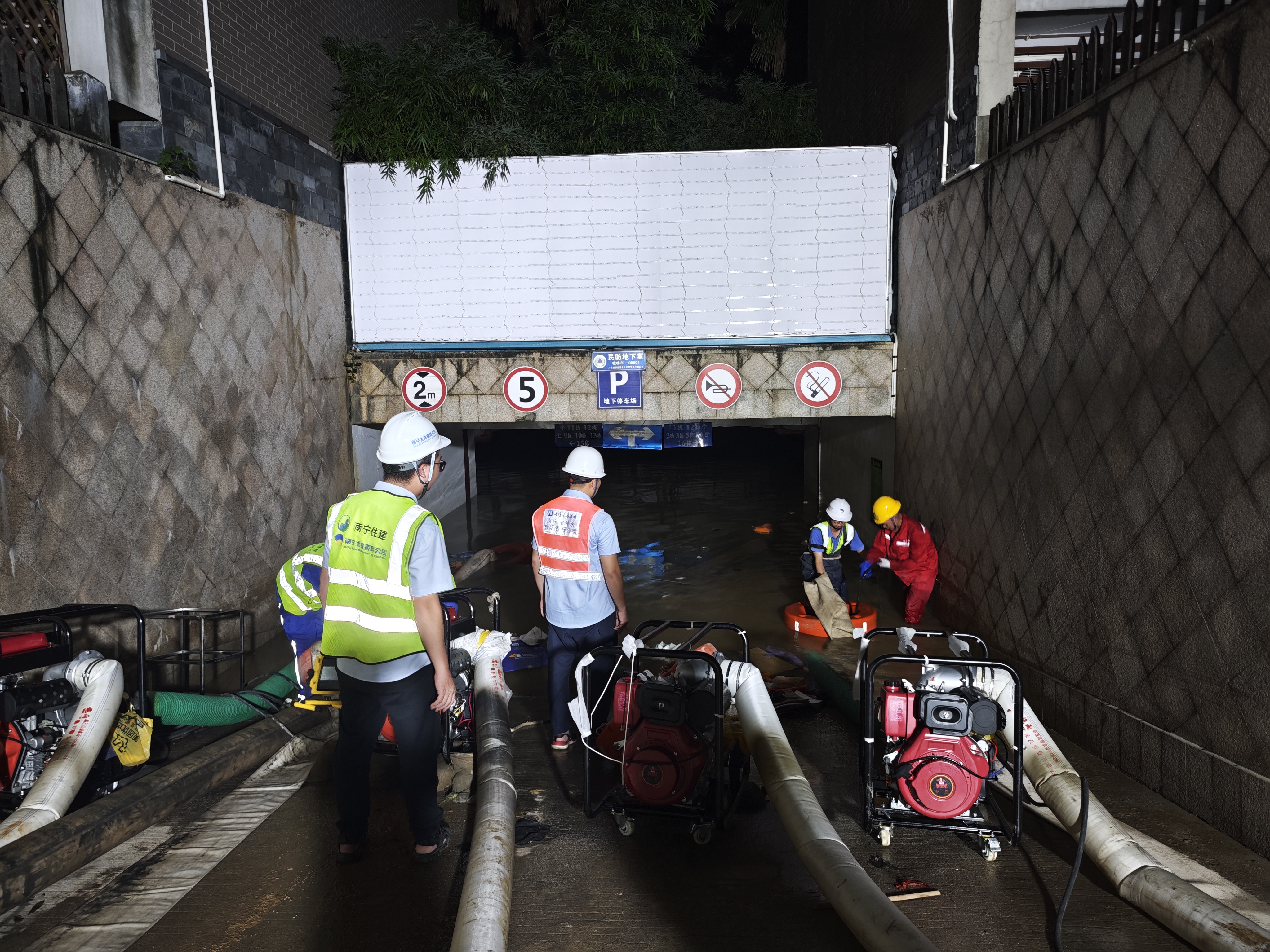 市排水公司堅持以高站位對標(biāo)、高起點謀劃、高效率推進、高質(zhì)量落實開展城市排澇應(yīng)急搶險工作。汛情發(fā)展到哪里,黨旗就插到哪里;隱患發(fā)現(xiàn)在哪里,黨員就奮戰(zhàn)到哪里。2024年以來,市排水公司共啟動防內(nèi)澇應(yīng)急響應(yīng)67次,出動車輛4167車次,抽升設(shè)備3351臺次,出動搶險人員超2萬人次,處置積水事件100次,出動時間由去年的平均12.5分鐘提升至8.7分鐘。2024年汛期,市排水公司先后成功防御“龍舟水”超長時多輪強降雨、超強臺風(fēng)“摩羯”、洪峰過境等極端天氣,順利完成中高考、第21屆東博會和峰會等重大活動排水保障工作。