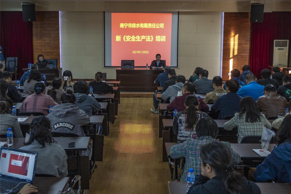 11月9日,排水公司宣貫新《安全生產法》暨“黨員身邊無事故”主題活動在江南污水處理廠二樓會議室召開?;顒友埩烁呒壒こ處?、注冊安全工程師、南寧學院教師潘金松授課。